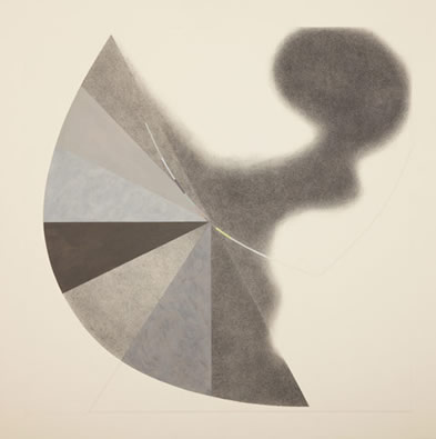 In the Shadowgraph series, I have introduced charcoal as a primary medium, limited the number of shapes, and accentuated the contrasts between wispy, blurred contours to simpler, clear cut forms I think of as “soft geometrics”. The appeal of charcoal is that it enables me to work from the inside out, in slow, successive applications to gradually form subtle shapes and delicate, nuanced edges.